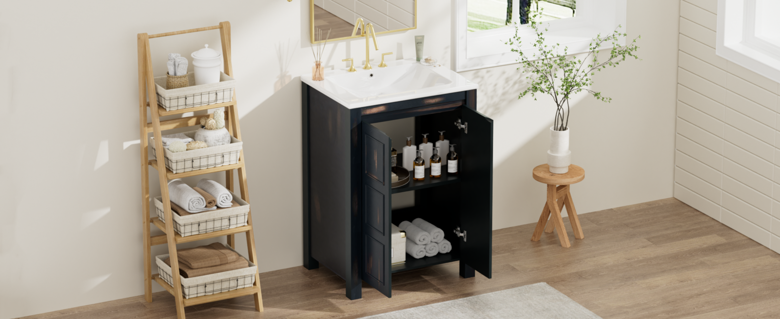 Upgrade your small bathroom with our Vintage Style Small Bathroom Vanity Cabinet, designed to maximize space while adding a touch of vintage charm. Measuring 24x18.3x33.8 inches, this compact vanity cabinet is perfect for smaller bathroom layouts.