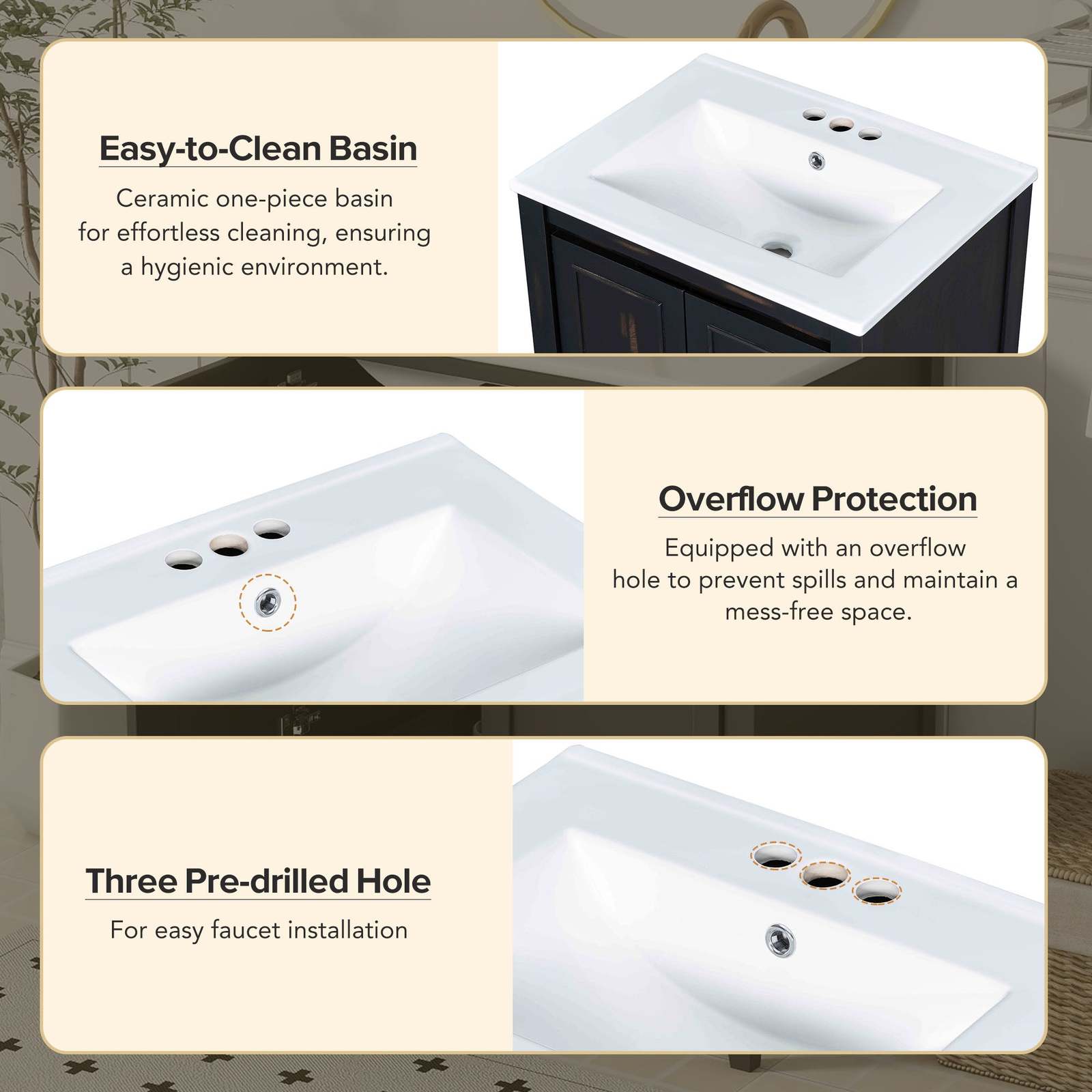 24-Inch Bathroom Vanity Cabinet with Ceramic Sink