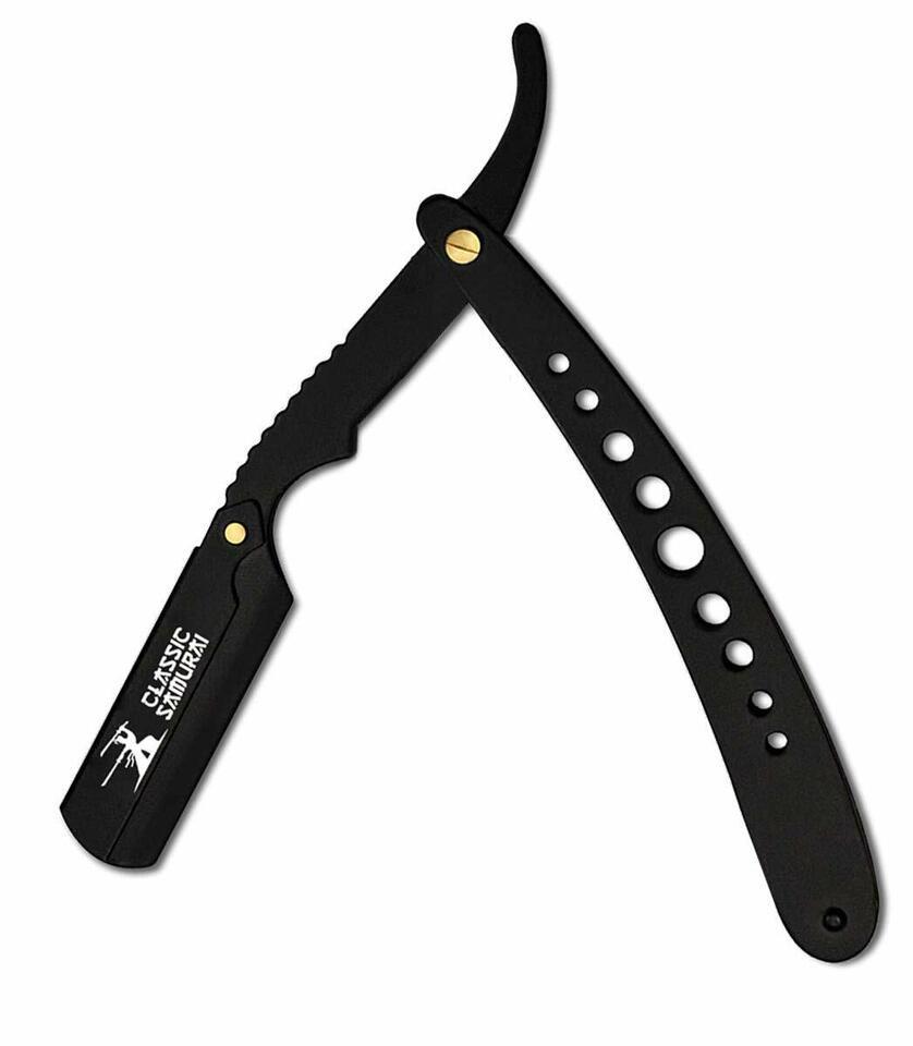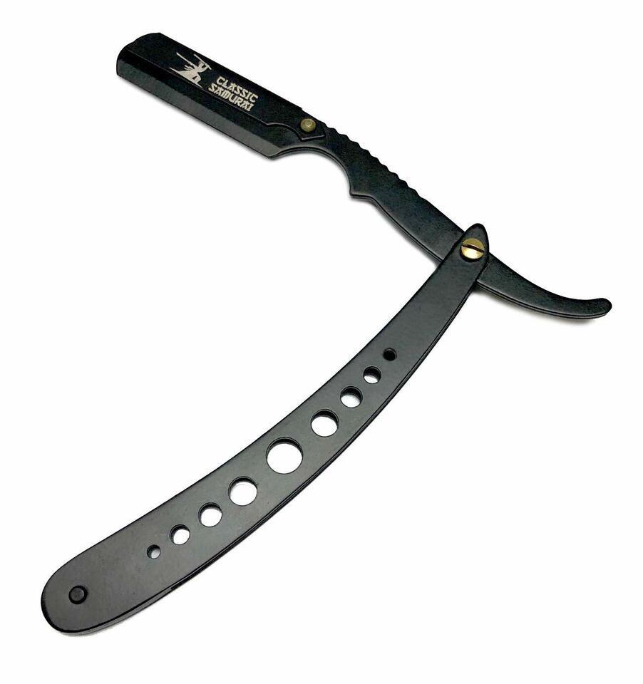 2x Classic Samurai CS-102 Wholes Matte Black Folding Straight Razor Shavette