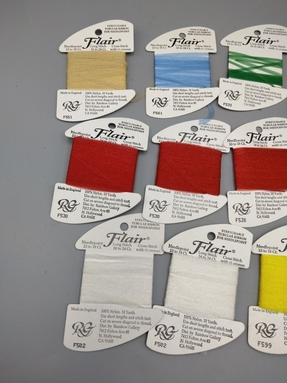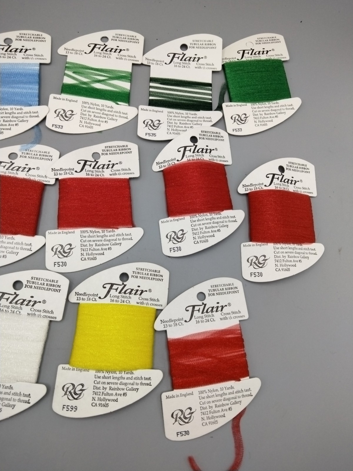 14 Rainbow Gallery Flair Tubular Ribbon Needlepoint Red White Yellow