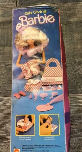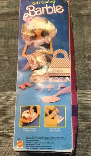 Vtg 1985 Barbie Gift Giving Barbie 1922 Made In Malaysia With Brush Present Box