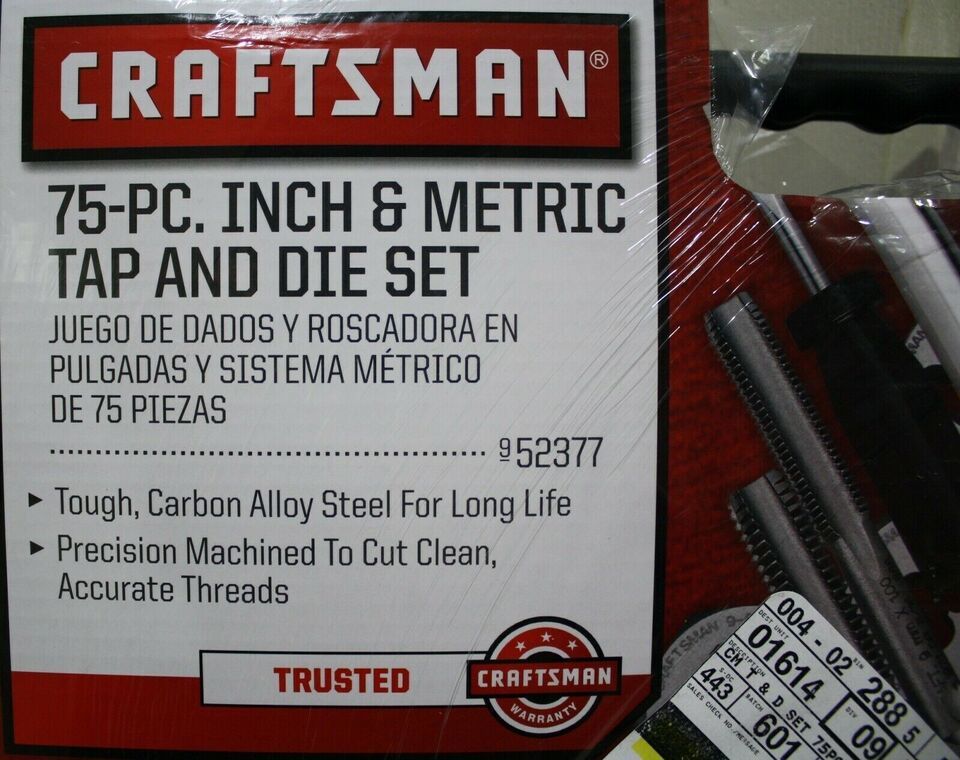 Craftsman 75 Pc Combination Tap & Die Carbon Steel Set Case SAE Metric 75 Piece