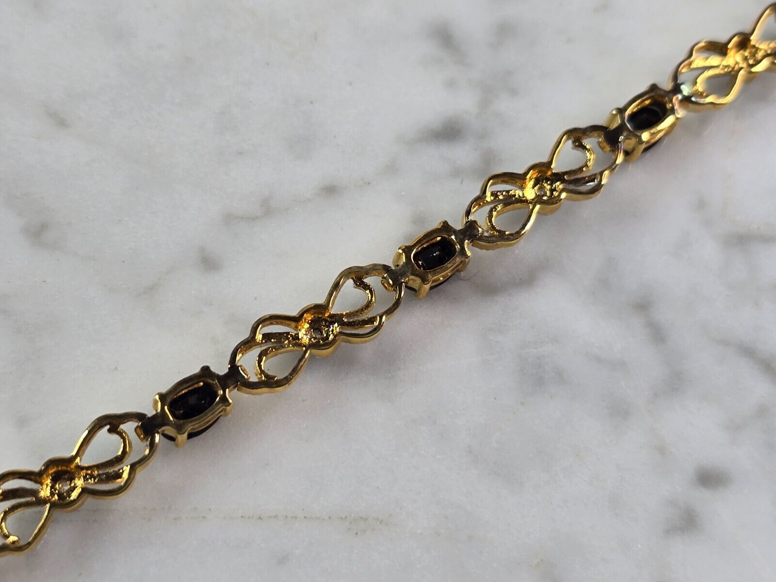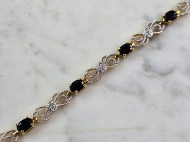 Womens Vintage Estate Sterling Silver Gold Tone Sapphire Bracelet 10.5g E1570