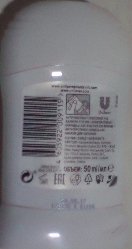 AXE Antiperspirant Stick for Men, Anarchy 2.0 oz, 4 ct, is part of the Anarchy male grooming range from AXE. It is a classically masculine, sophisticated fragrance with an addictive edge. Crisp notes of green fruits, sandalwood and fresh sage keep you smelling great. AXE Antiperspirant Stick for men, Anarchy 0.50ML oz, 4 ct provides 24-hour antiperspirant protection to keep you confidently fresh and dry for longer. Apply a few strokes to washed and dried armpits. Wait a minute, get dressed and go. Boost your scent with AXE Body Spray for men 4 oz, , 4 ct get clean and fresh with AXE Body Wash for men 16 fl. oz, and complete the range with AXE 2-in-1 Shampoo and Conditioner for men 12 fl oz - all available in Apollo. An AXE Deodorant Stick for Men 3 oz is also available in Dark Temptation. The AXE Deodorant Stick for men 3 oz goes on smoothly to provide all day freshness and odor protection to keep you confidently fresh for longer. And check out our other AXE Antiperspirant Sticks for men scents like Phoenix, Essence, Anarchy, and Anarchy. FIND YOUR MAGIC with AXE Antiperspirant Stick for men Apollo 2.7 oz from AXE Grooming For Men.