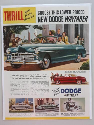 1949 Chrysler Motors Dodge Wayfarer Sport Roadster College Vtg Magazine Print Ad