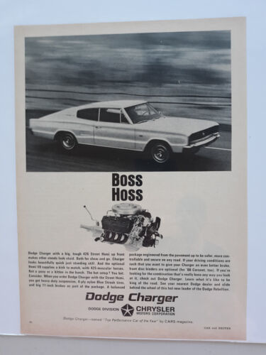 Chrysler Motors 1966 Dodge Charger 426 Street Hemi Engine Vtg Magazine Print Ad