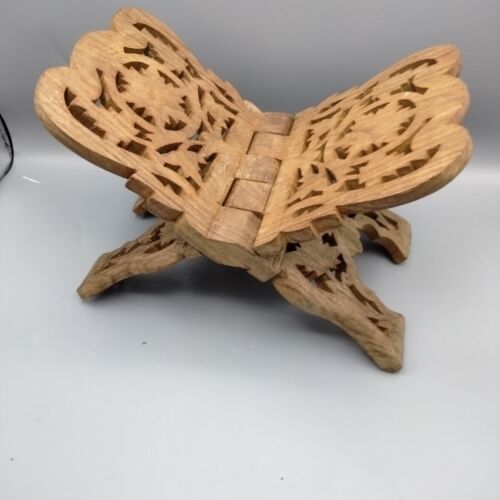 Vintage Hand Carved Wooden Folding Book Holder Bible Stand India Sheesham wood