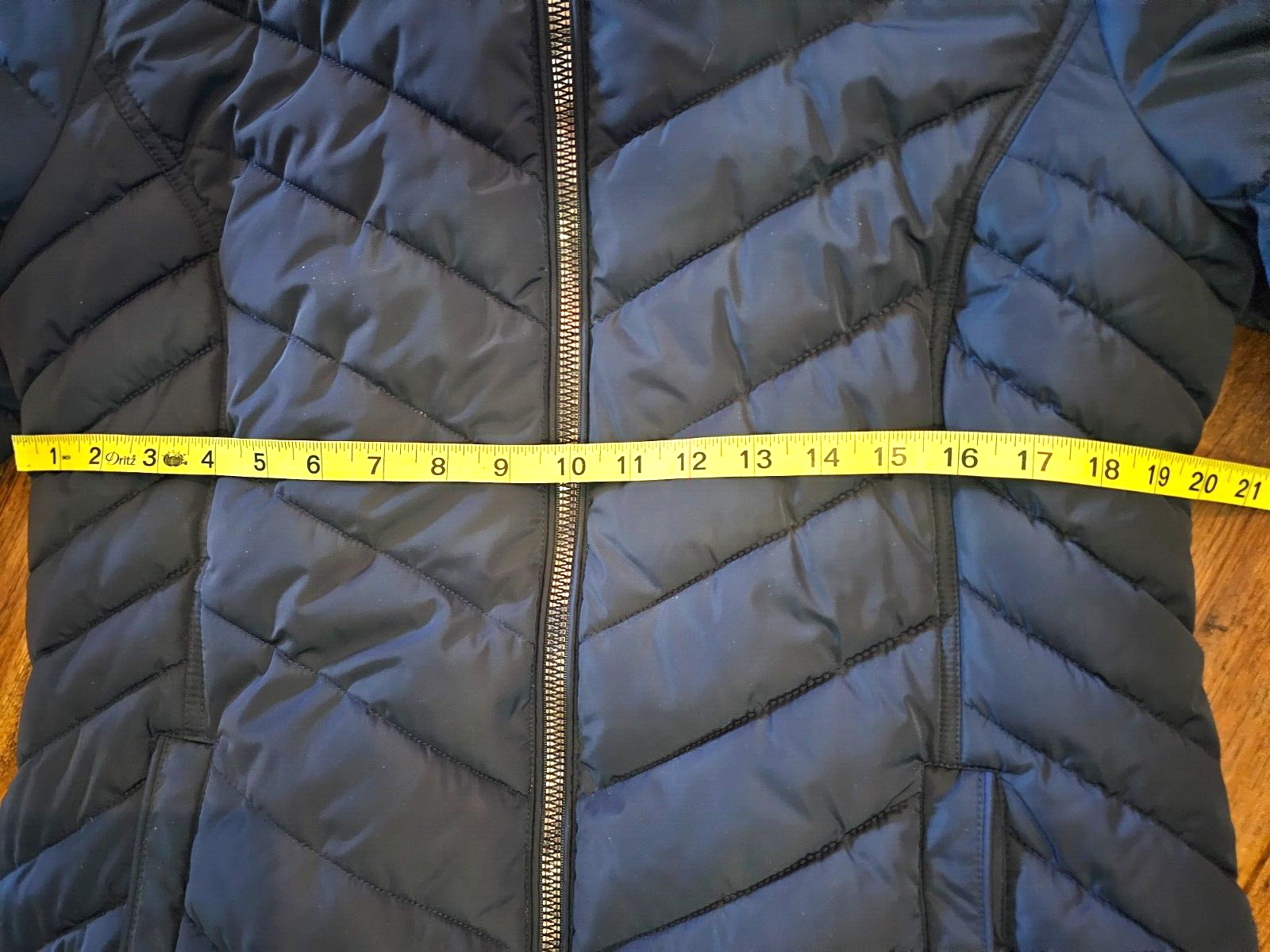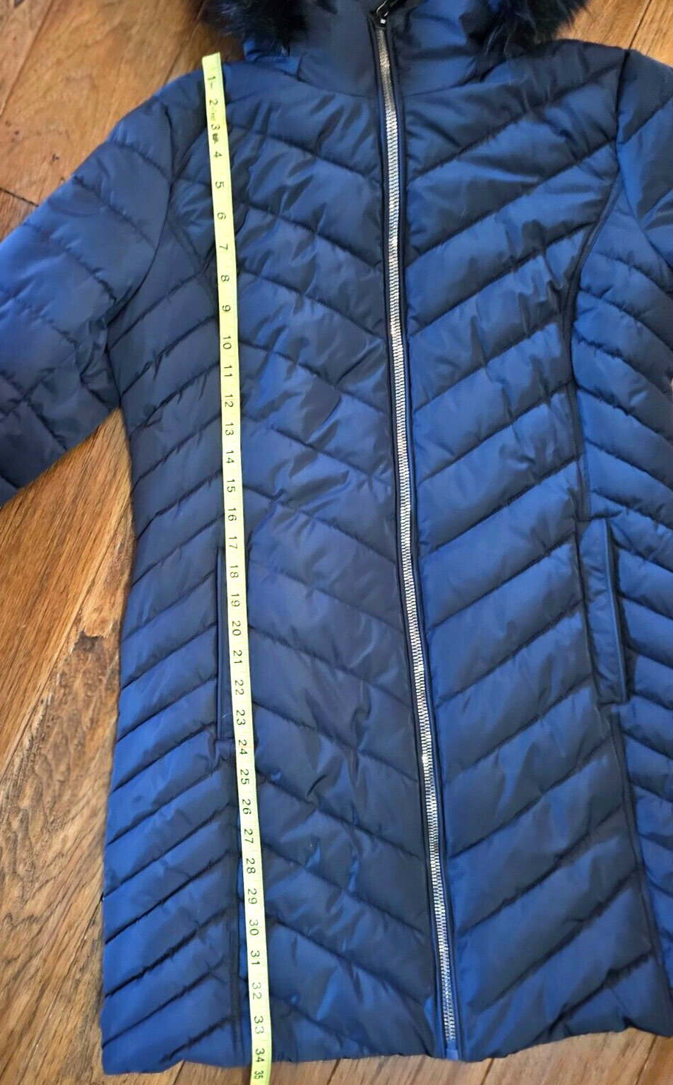 Kenneth Cole Women's Petite Faux-Fur-Trim Hooded Puffer Coat Chevron Navy Large CTS