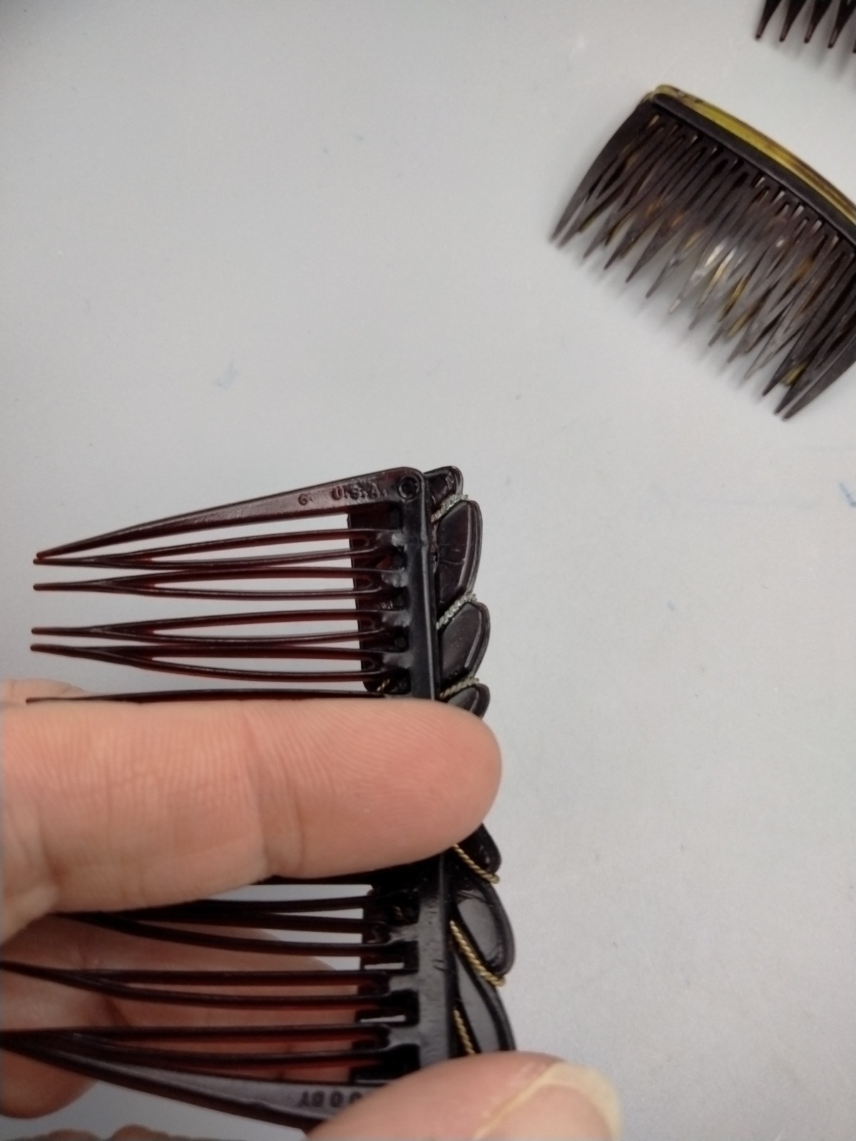 Each comb is designed with plastic material that is both durable and waterproof, ensuring a comfortable experience with all hair types. The brown tortoise shell theme adds a timeless charm to these USA-made accessories, perfect for anyone looking to add a hint of vintage flair to their ensemble. Whether you're traveling or just stepping out for a party or work event, these hair combs are versatile enough to complement any look.