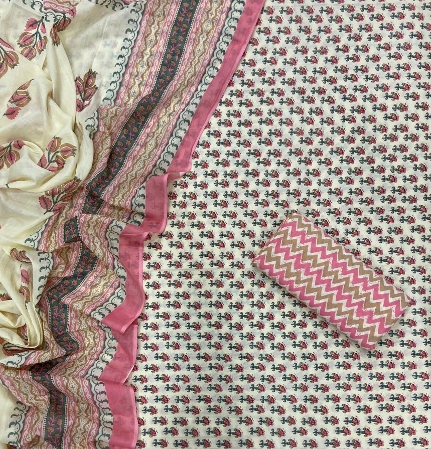 Indian Dress Cotton Suit-Unstitched Cotton Suit Set-Cotton Print Suit-3PC Suit