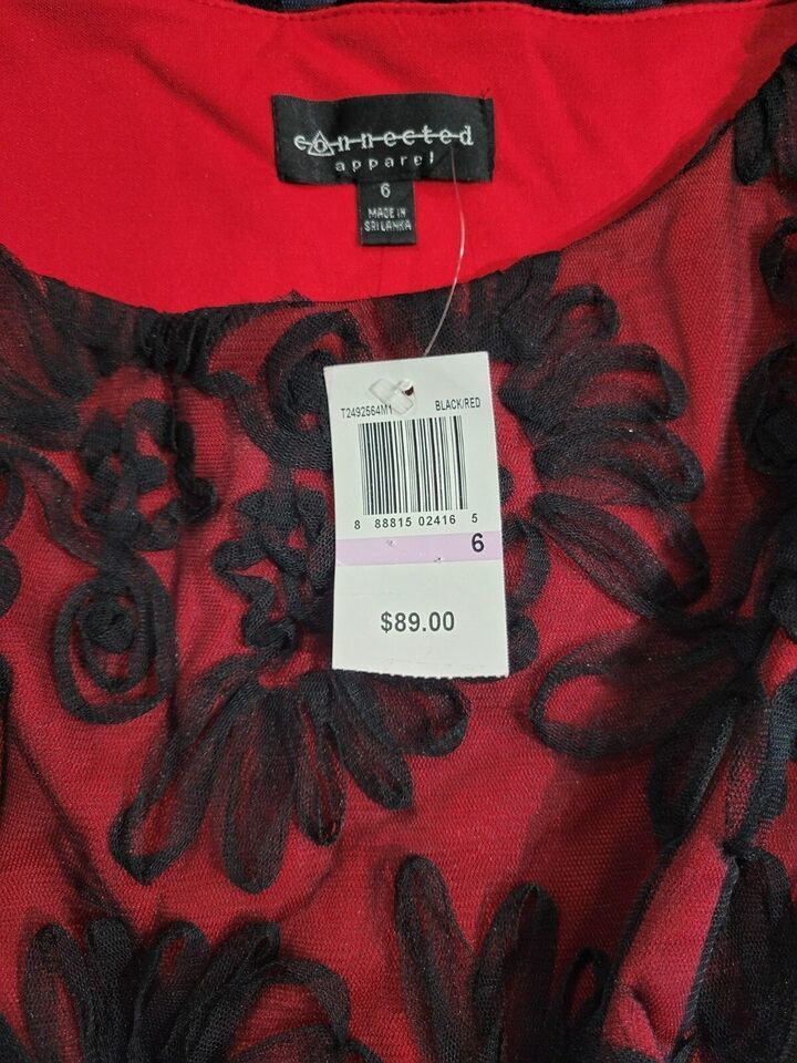 NEW Red & Black Soutache Faux-wrap Gown Size 6