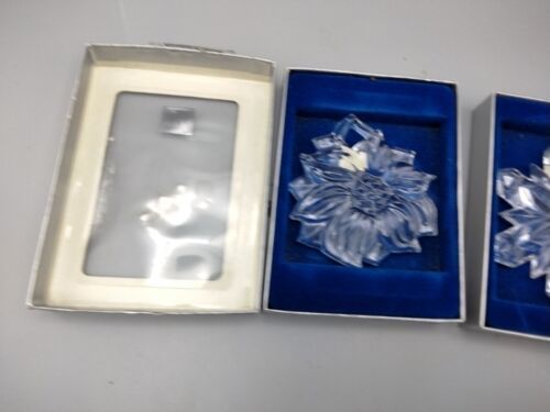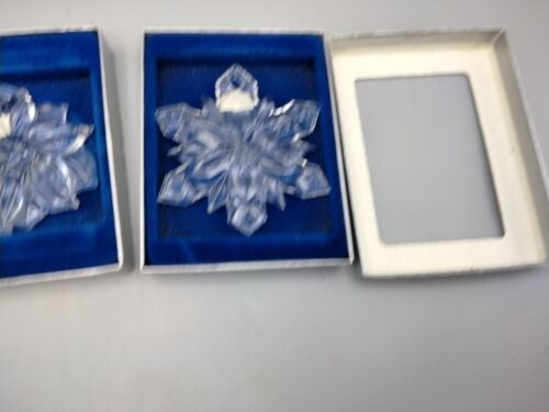 2 Mikasa Joyous Collection Crystal Snowflake Poinsettia Christmas Ornament Vtg