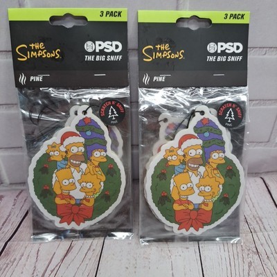 PSD The Simpsons Christmas Wreath AIR FRESHENER Bart, Homer, Marge Lot Of 2 Pks