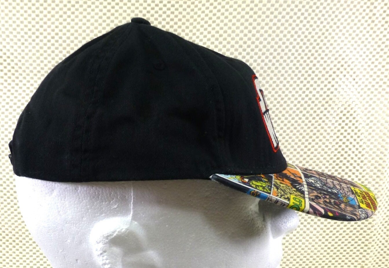This Star Wars snapback hat features a bold embroidered logo and a comic print brim showcasing iconic characters. The adjustable fit ensures comfort and versatility.
