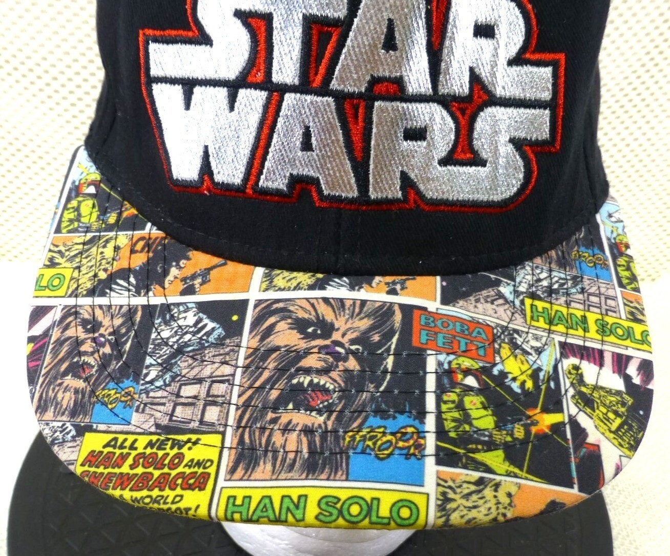 ? Vibrant comic print brim with Star Wars characters