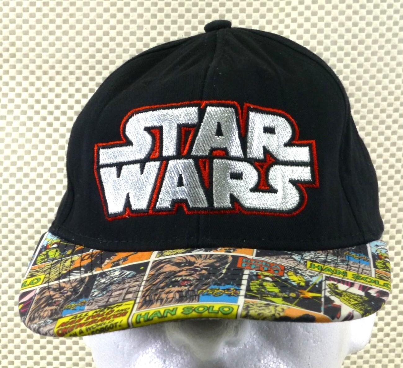 Star Wars Youth Snapback Hat Black With Comic Print Brim Adjustable Fit