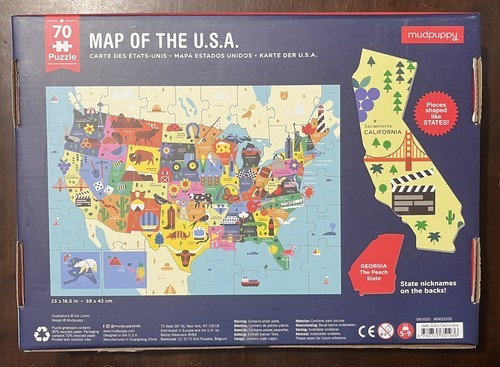 Map of The United States of America 70 Piece Puzzle Capitols Mudpuppy COMPLETE