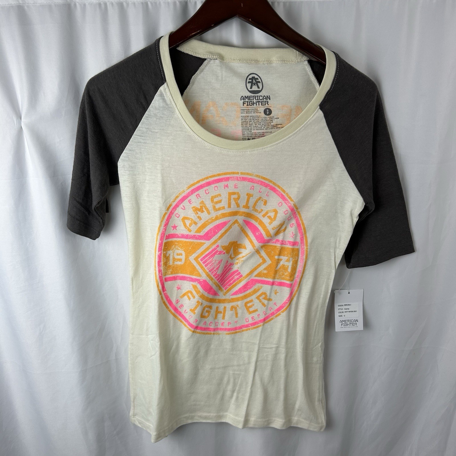 American Fighter Bronx T-Shirt Size S Dirty White Gray Neon Graphic Tee NWT
