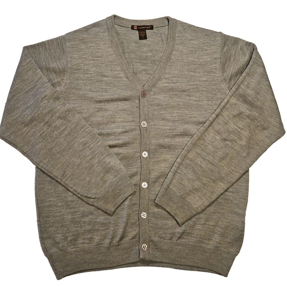 Harriton Cardigan Sweater Gray Grandpa V Neck Anti Pill Acrylic Jersey