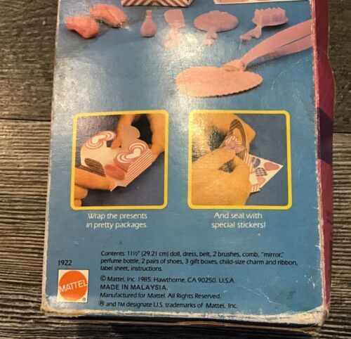 Vtg 1985 Barbie Gift Giving Barbie 1922 Made In Malaysia With Brush Present Box