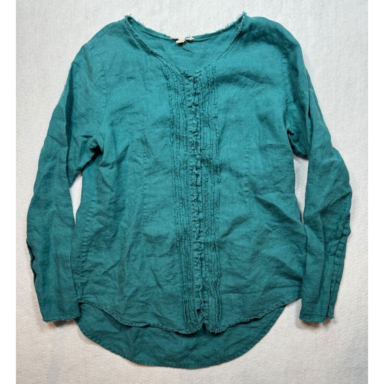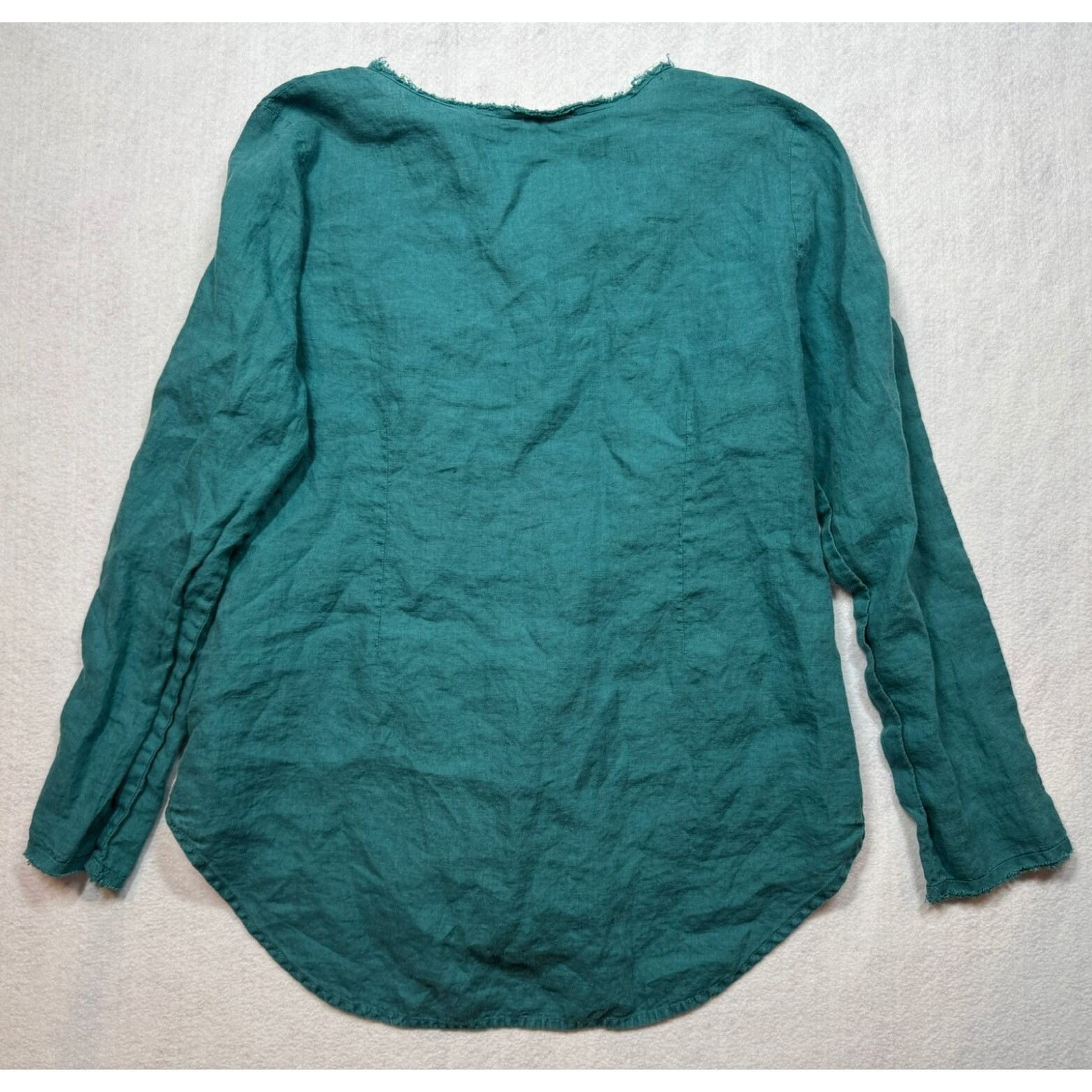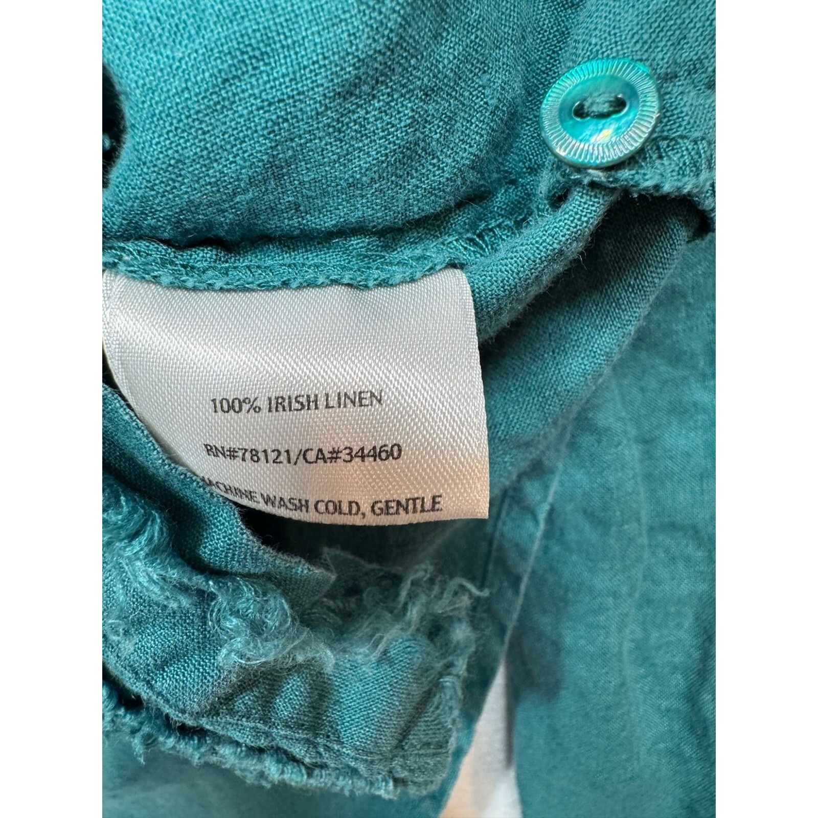 Eileen Fisher Irish Linen Button Front Shirt Jade Green Womens Small S Lagenlook