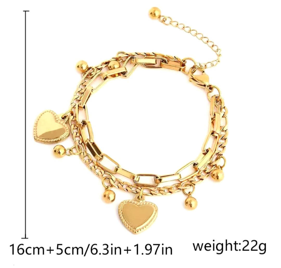 Double bracelet with heart pendants. / Pulsera doble con colgantes de corazones