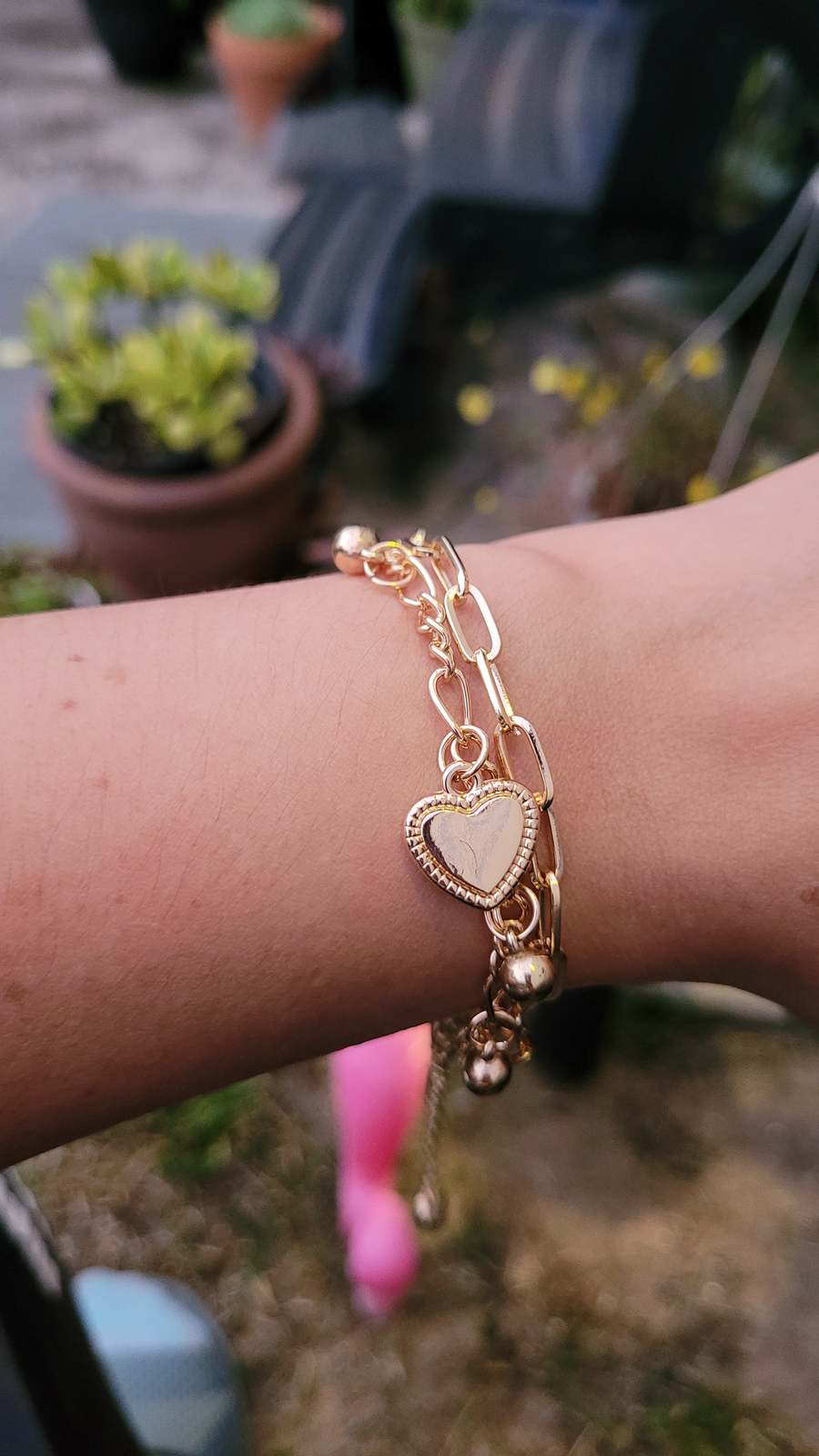 Hermosa pulsera con colgantes de corazon ideal para usar en cualquier ocasion.