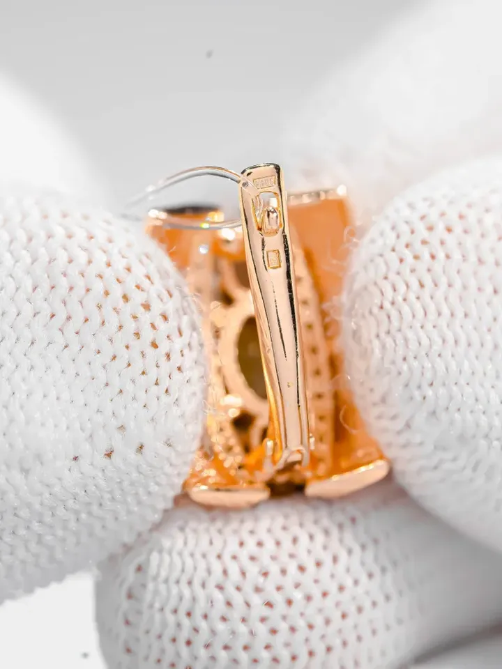 The height of the earring is 16 mm, the working area of ??the pin is 12 mm, the length of the pin to the lock is 9 mm. Each product has a 925 sample, as well as information about the stones and metal, each product passes the assay office and a strict check for the precious metal silver. The Rhodium coating does not allow jewelry to darken, blacken and cause allergies, acts as a protective layer and does not wear off (White gold is also coated with rhodium). The claws are hard, the stones are fixed tightly and do not bend. Silver is of the best quality, does not cause allergies, does not bend, durable. We also cover the claws separately with rhodium, which gives the jewelry even more appearance and expensiveness. We are pleased to present you luxurious silver earrings with gilding. This exquisite jewelry is made of high-grade metal 925, which guarantees its strength and durability. Gold plating 585 adds a special charm and shine to the earrings, making them look like jewelry made of pure gold. About the main stone of the jewelry Quartz is one of the most common minerals on the planet. Quartz is formed during various geological processes and therefore has many varieties. Jewelry made of quartz is quite popular, suits any style and event and becomes a real talisman for its owner