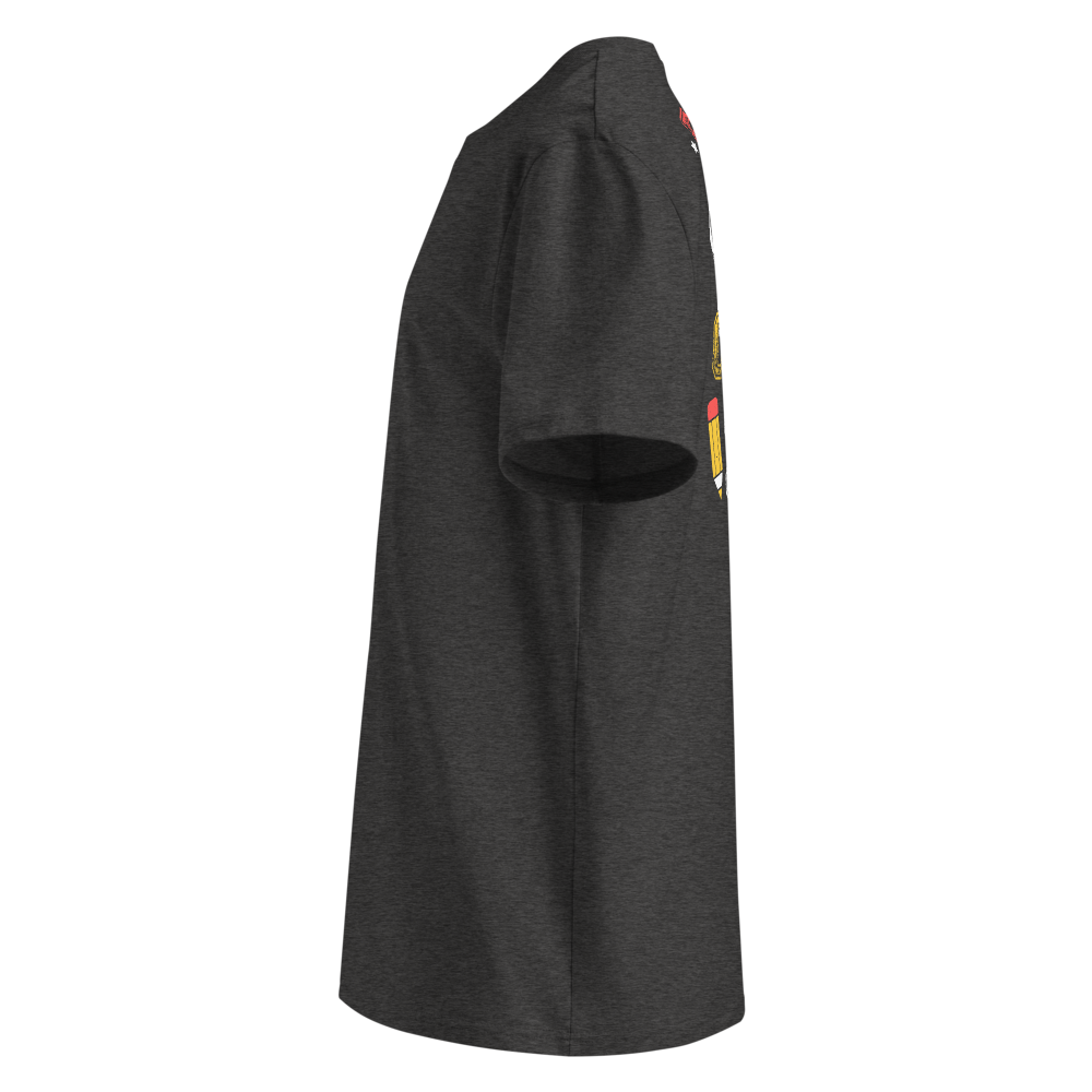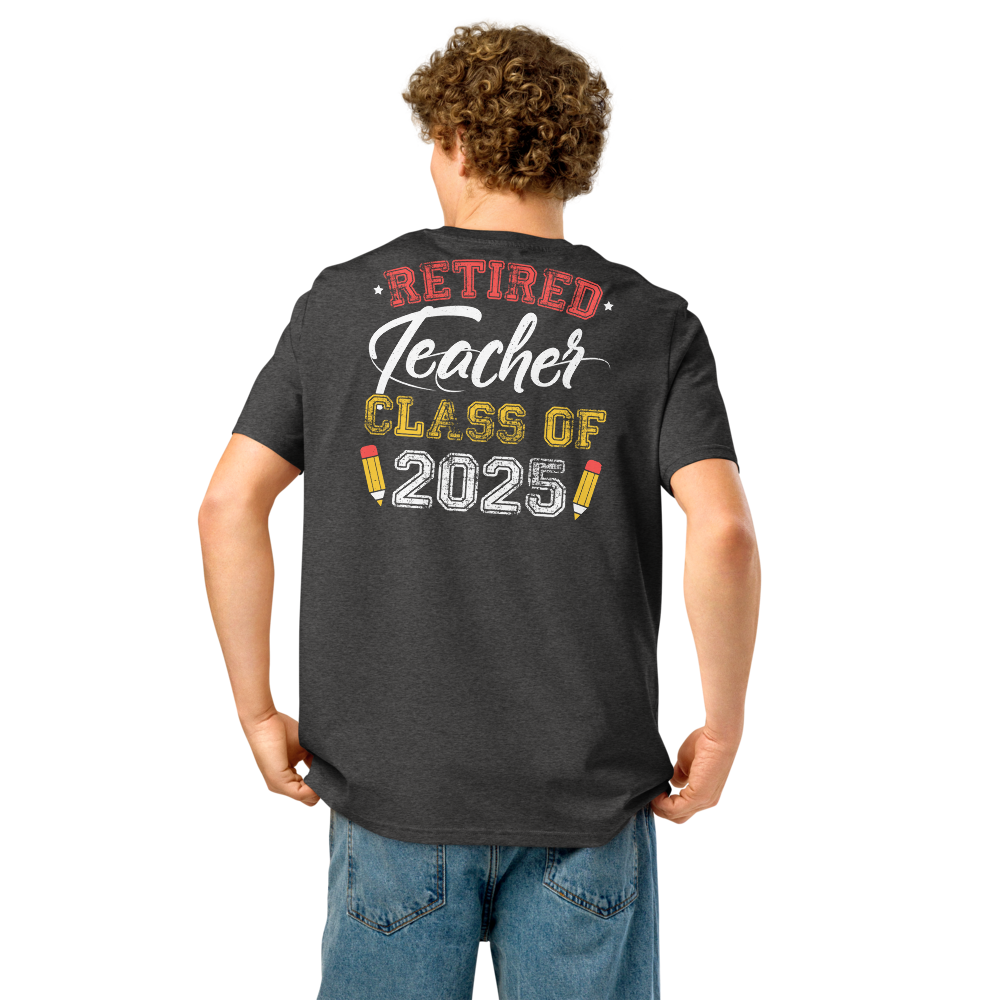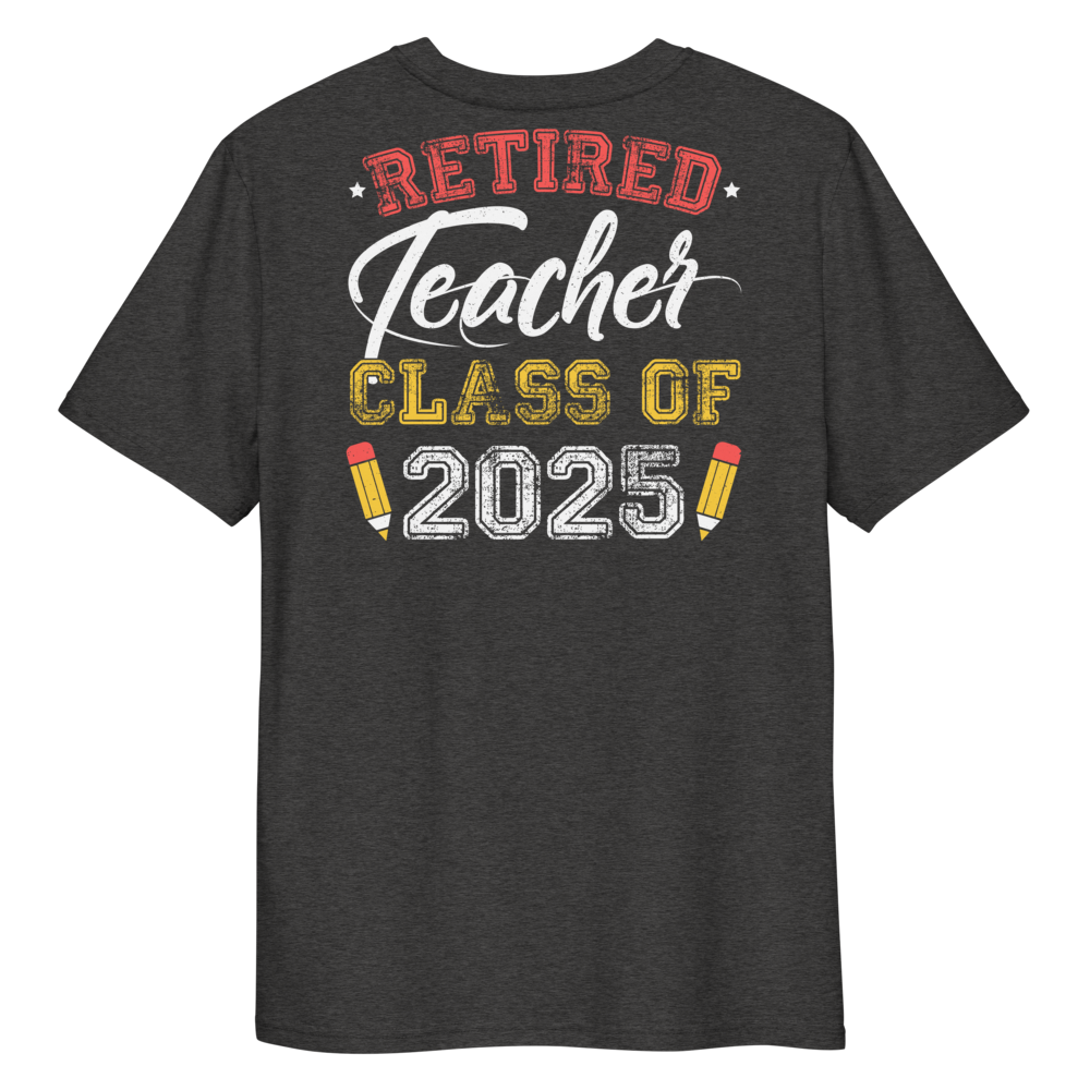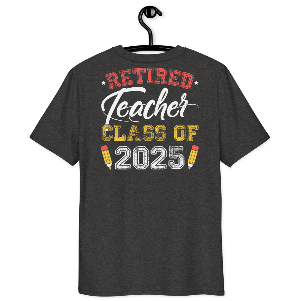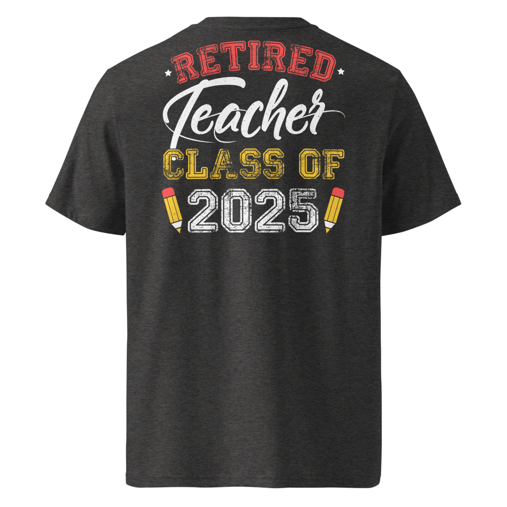 Unisex Organic Ribbed Neck T-Shirt – Retired Teacher (Back, Dark Heather Grey)