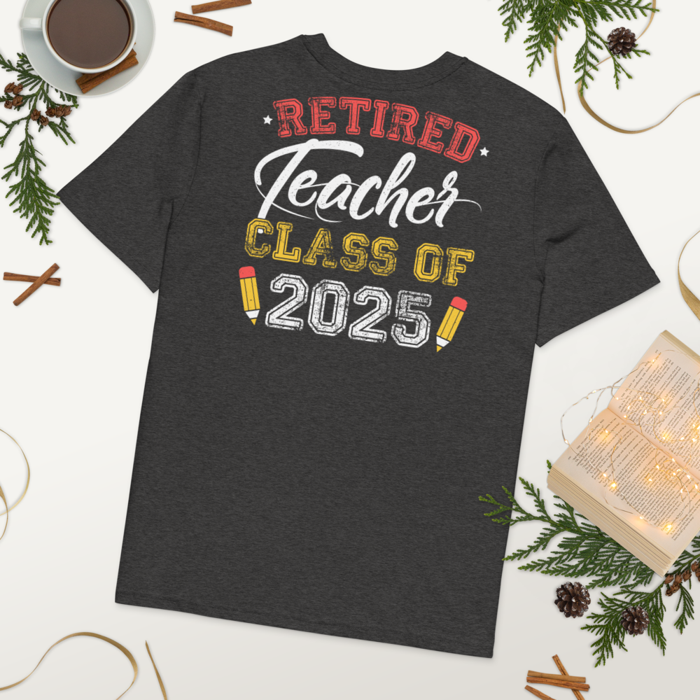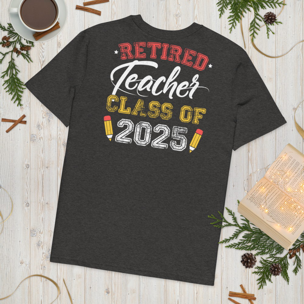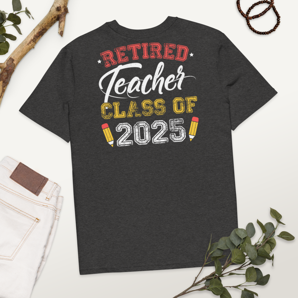 Proudly wear your retirement title with this ultra-comfortable and sustainable unisex tee. Made from 100% organic combed ring-spun cotton, it features a ribbed neckline for a sporty yet casual touch. With a bold “Retired Teacher” back print, it’s the perfect blend of relaxed fit, everyday durability, and statement-making pride.
