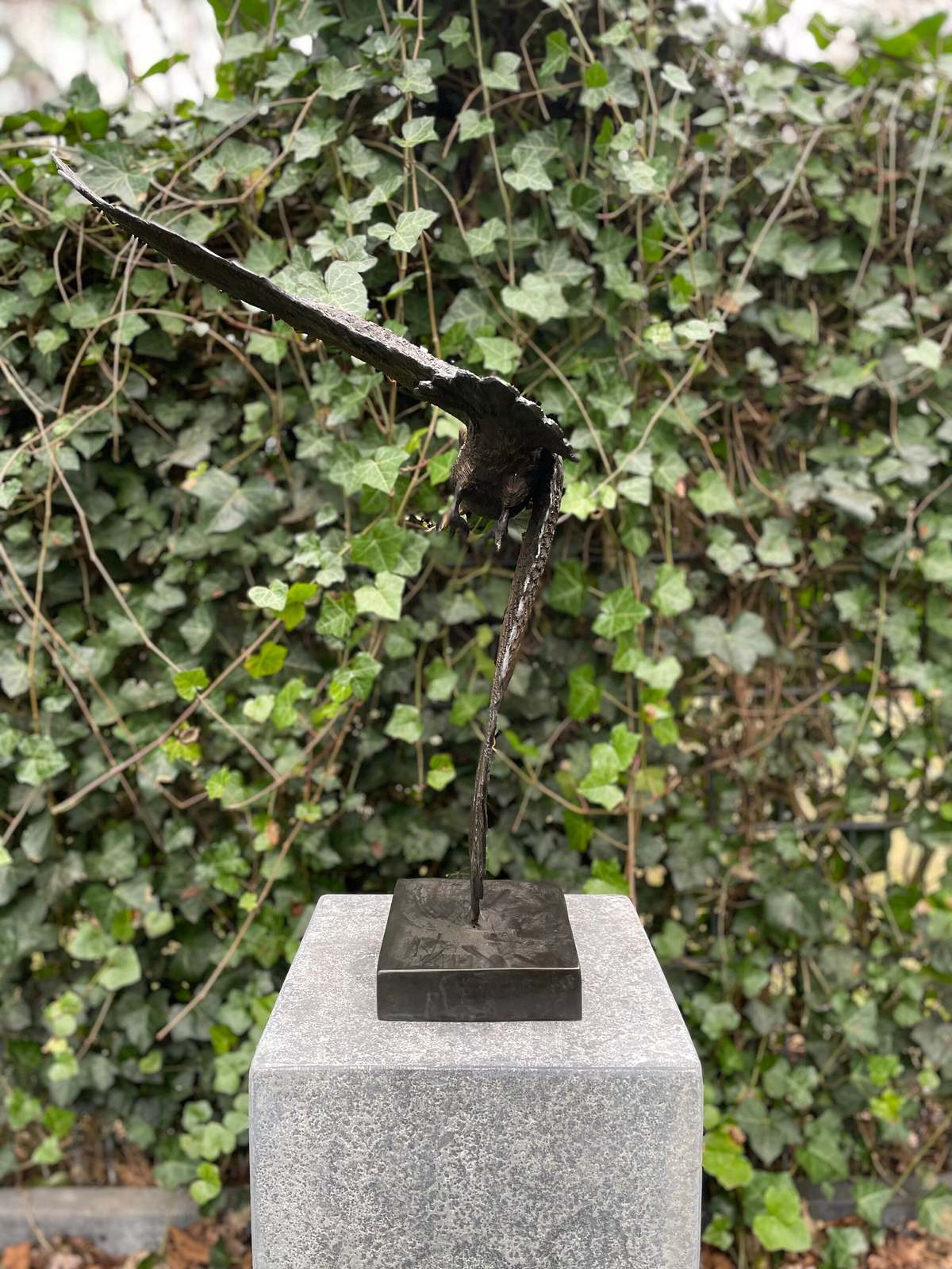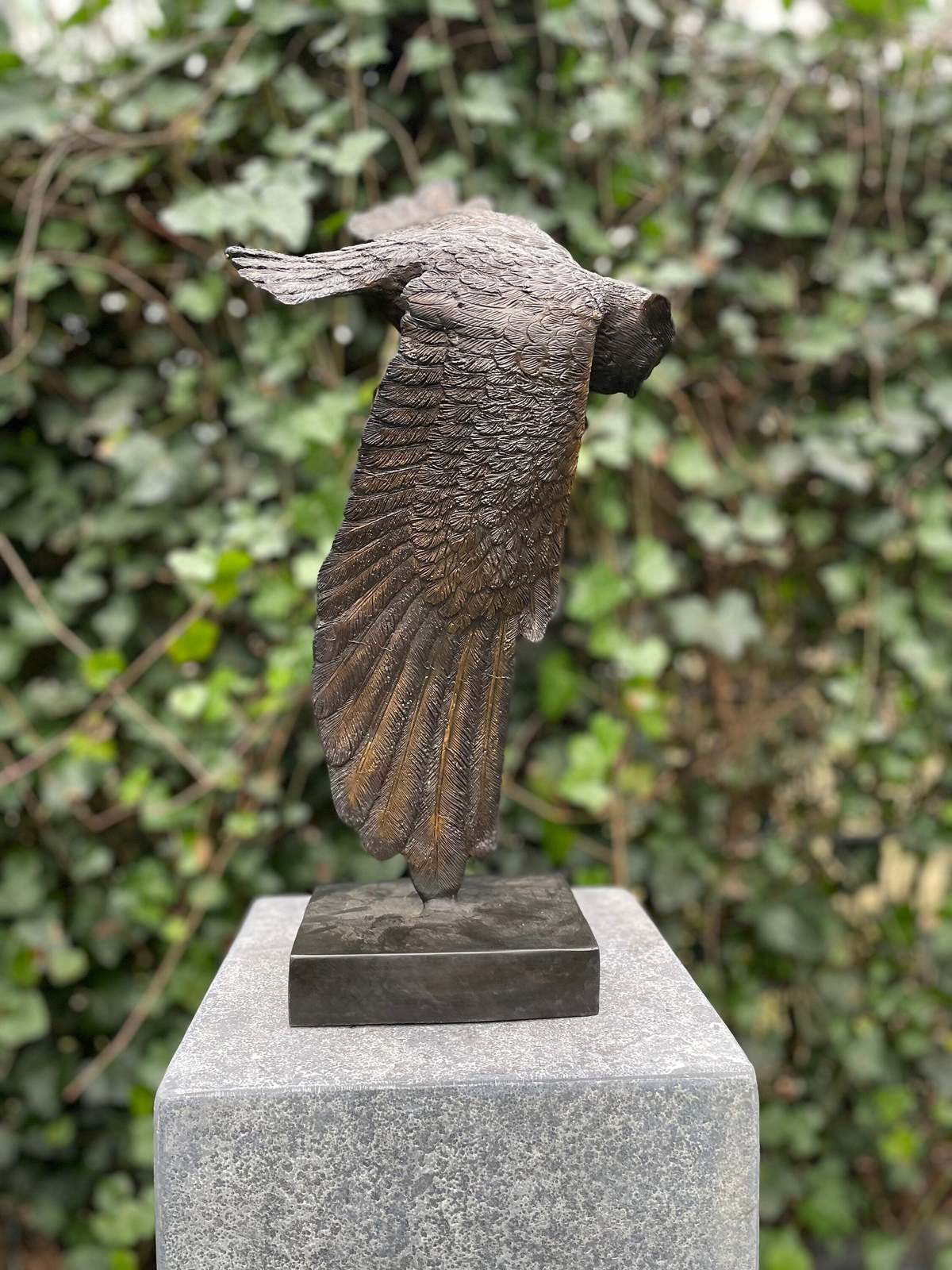 Material: High-quality bronze with detailed feather textures and natural patina.