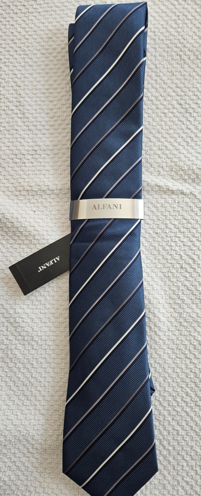 ALFANI Men's Tie Belwood Stripe Navy NWT MSRP $55.00