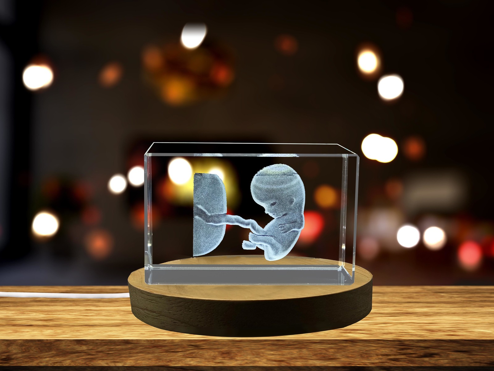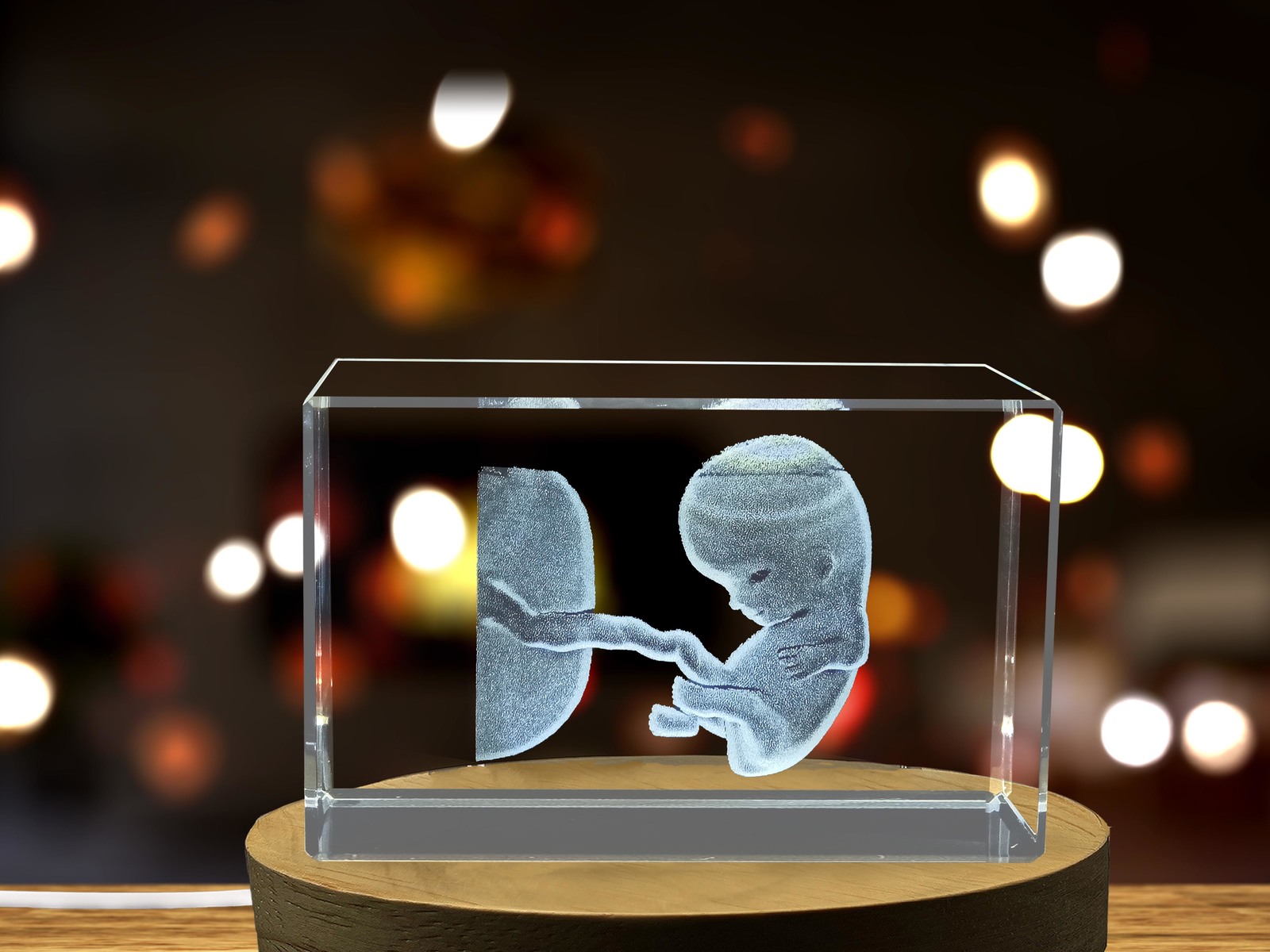 LED Base included | Third Month Foetus 3D Engraved Crystal Pregnancy Gift