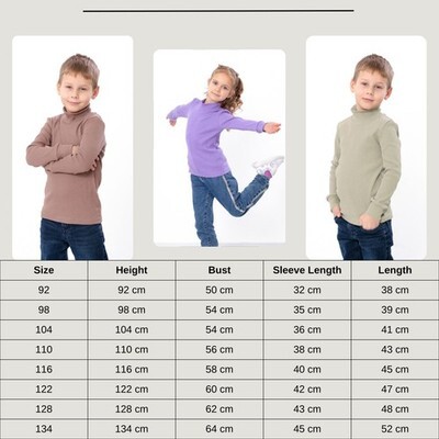 A children's turtleneck is an indispensable element of your child's wardrobe for the cold season. This stylish and comfortable turtleneck is made of quality material that provides comfort and warmth. It is ideal for everyday use or for school clothes.