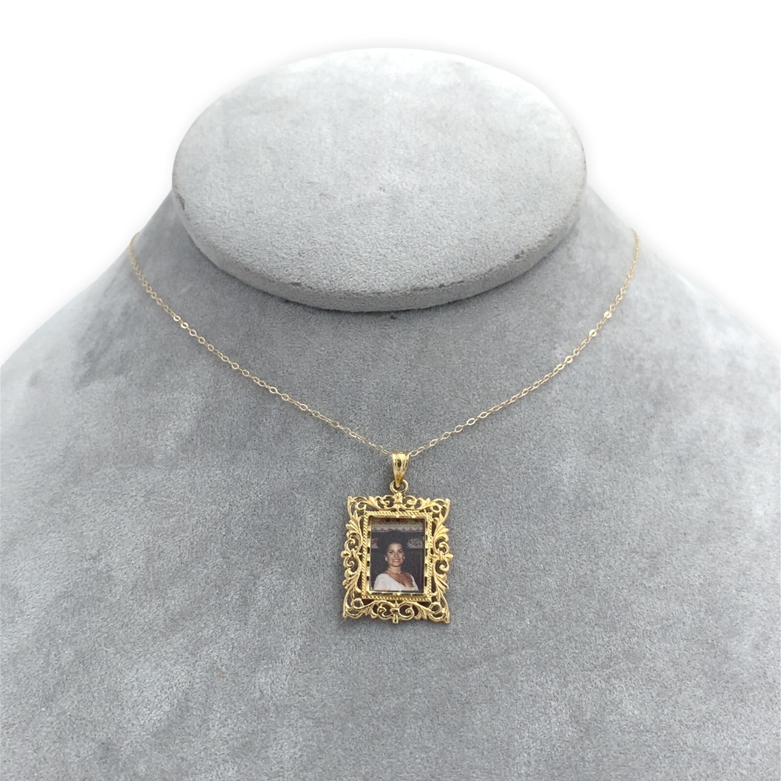 14k Yellow Gold Picture Frame Pendant with Chain Jewelry (#J7261)