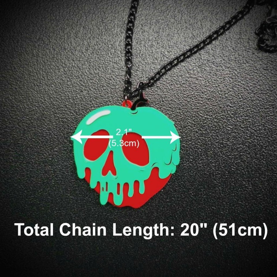 POISON APPLE NECKLACE 2" Green Acrylic Pendant Snow White Wicked Witch Halloween