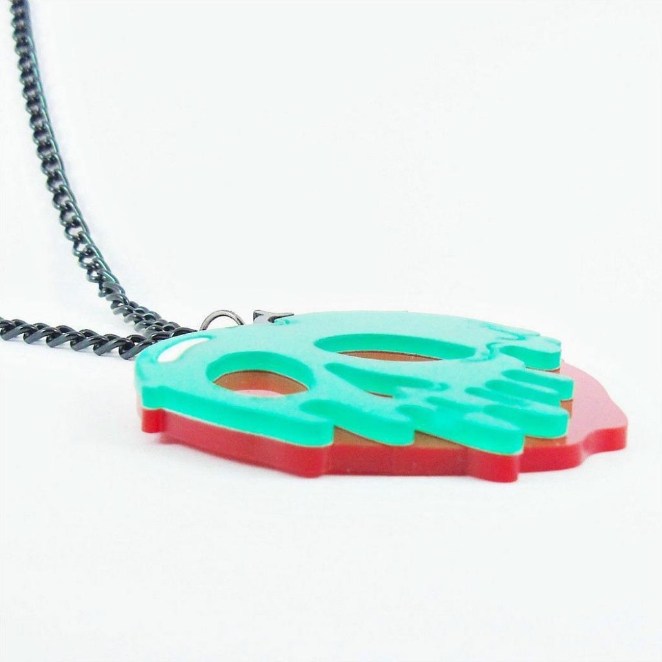 Wickedly delightful 'Snow White' inspired necklace with acrylic pendant and metal chain.