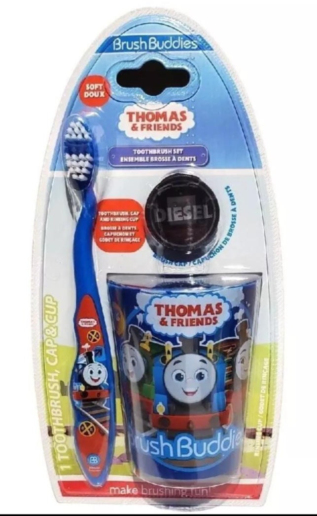 Thomas & Friends Soft Toothbrush Brush Buddies Cap Rinsing Cup Child Gift NIP