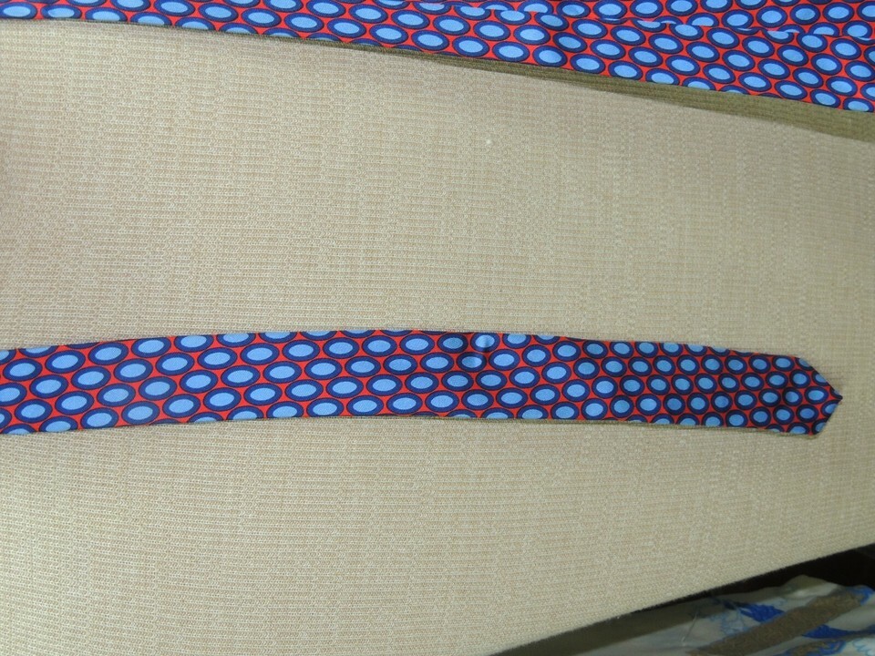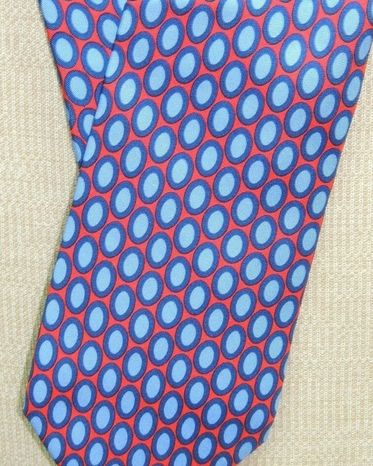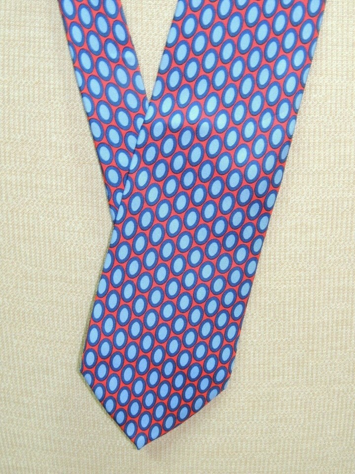 346 Brooks Brothers US Neck Tie/Necktie Silk coral red blue geometric 59"x3.5"