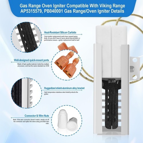 Oven Igniter Perfect Compatibility and Function: The SGR4001 Fit for viking gas range oven,replace part number: AP5315579 065650-000 SGR4001 792263. Oven igniter replacement can help fix an oven that is not heating due to an igniter failure. If your oven won't heat up or heats up abnormally, you need to replace your old oven igniter to extend the life and maintain the efficiency of your oven.