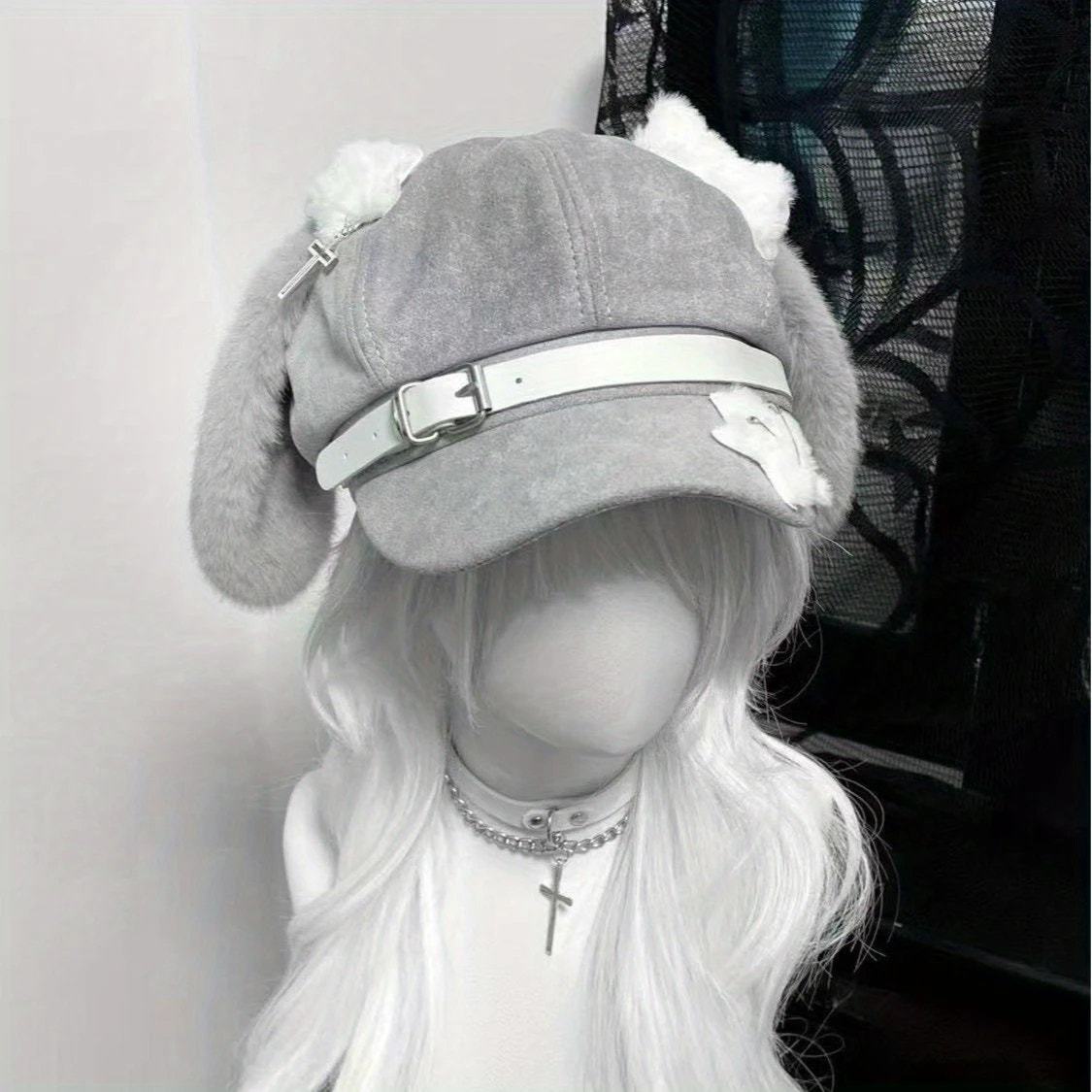 Kawaii Gray Bunny Ear Hat with White Buckle and 50 similar items