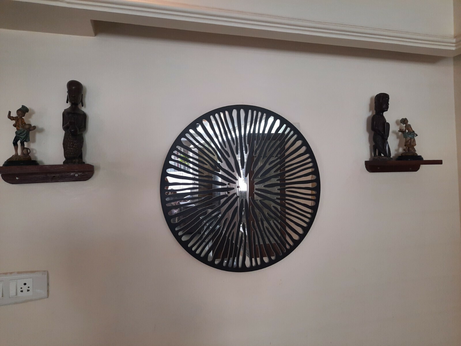 Black Wood Art Wall Mirror Dew Drops Handmade Designer Home Decor Vintage Boho