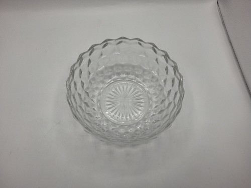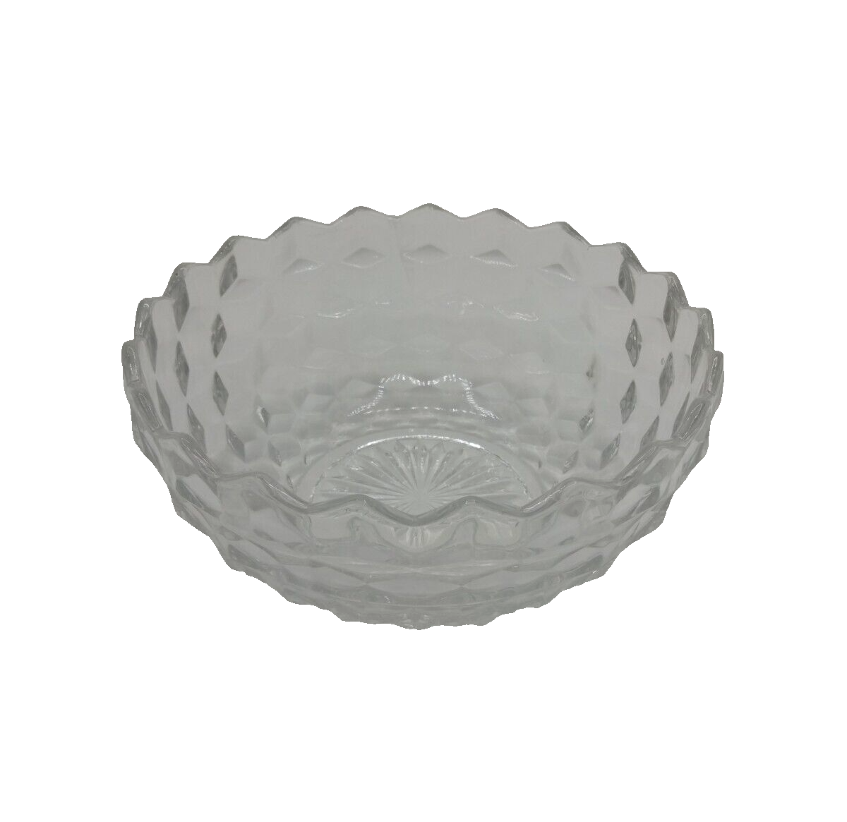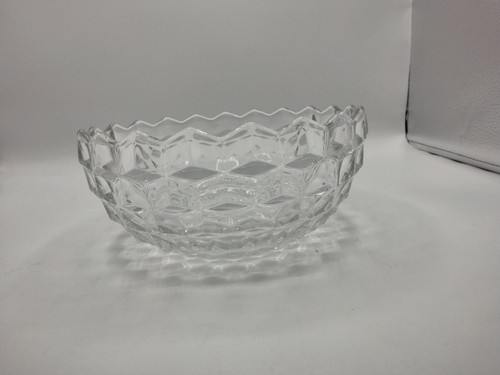 Fostoria American Clear Glass Round Serving Bowl 8" Cube Block Geometric