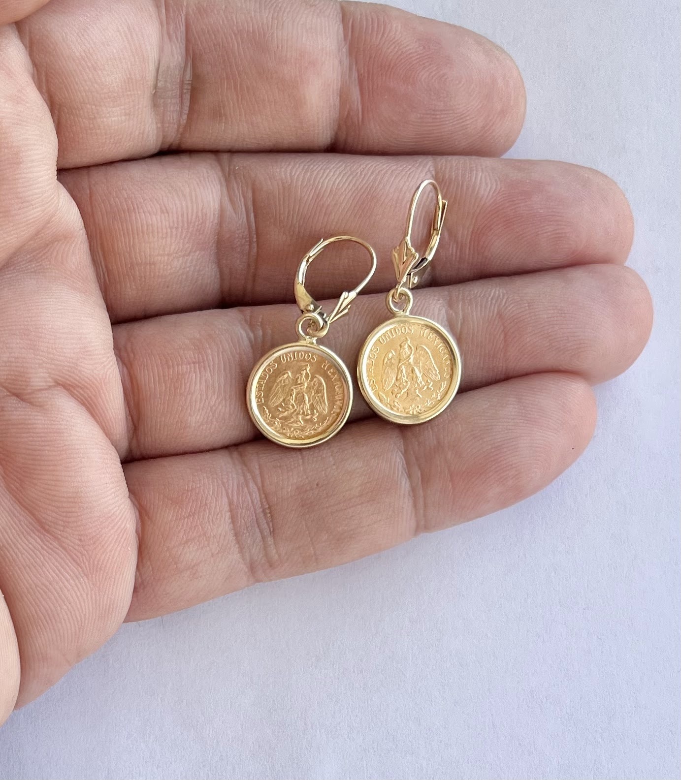 Dos pesos earrings, Mexican gold coin earrings, 2 pesos gold earrings