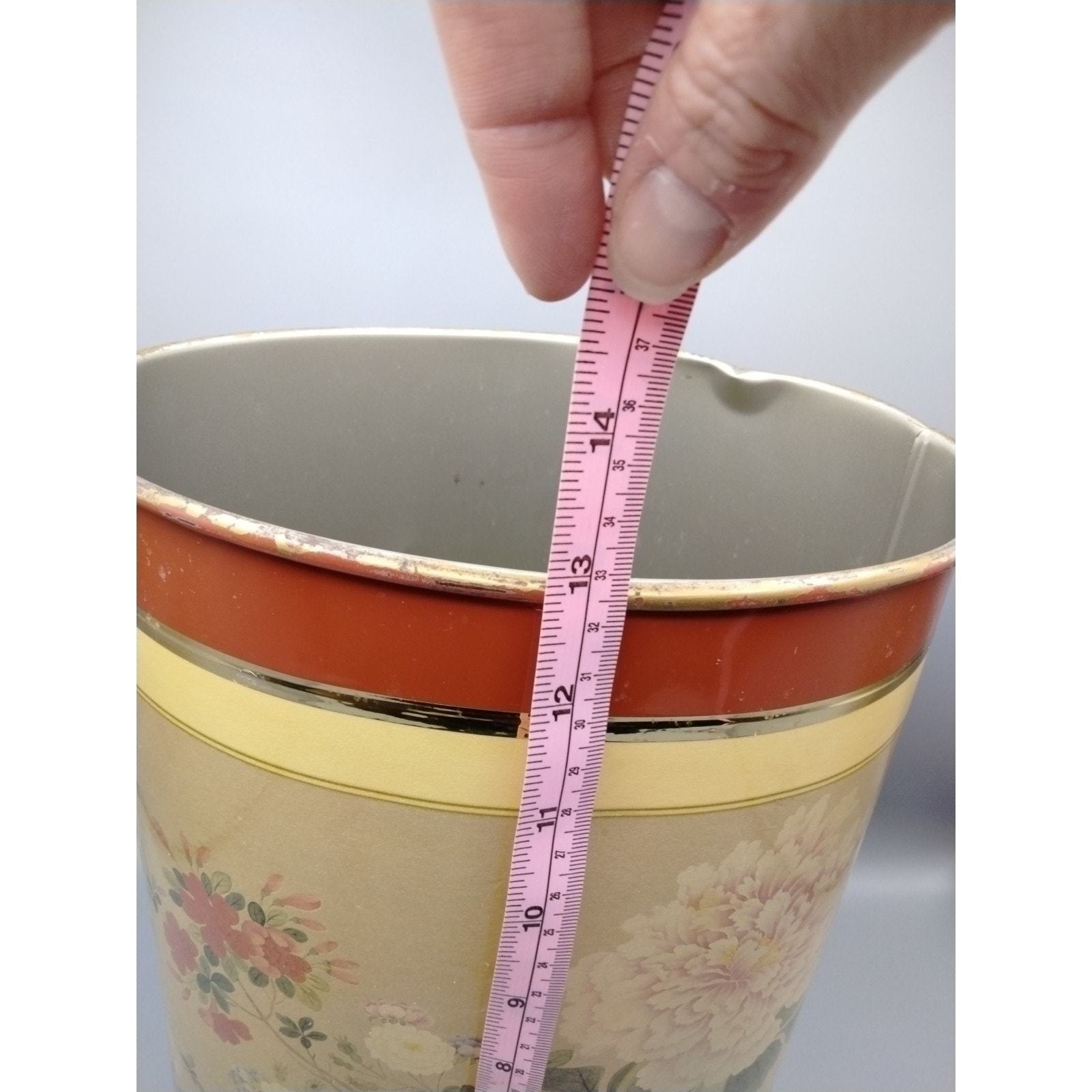 Vintage Oval Metal Trash Can Coral Cream Floral Flowers Peony 13"
