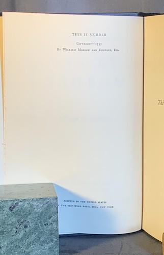 'This is Murder' by Charles J Kenny, which was written by Erle Stanley Gardner. Published by William Morrow in 1935.