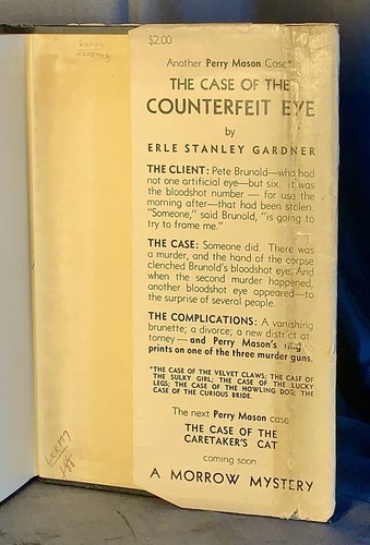 The original first edition dust jacket is very elusive. This jacket is a good plus specimen, but even so, rare and extremely desirable. (The jacket should have restoration done by a professional archivist and a clamshell case made to protect this rarity. I?m the event this book is unsold this will be done) From our research even Gardner had difficulty in obtaining a jacketed copy. Ten or eleven copies in jackets are in various institutions. This copy was part of the collection of The Erie Stanley Gardner Museum in Ventura, California where Gardner wrote for the pulp magazines, practiced law, and penned the first two Perry Mason mystery books.