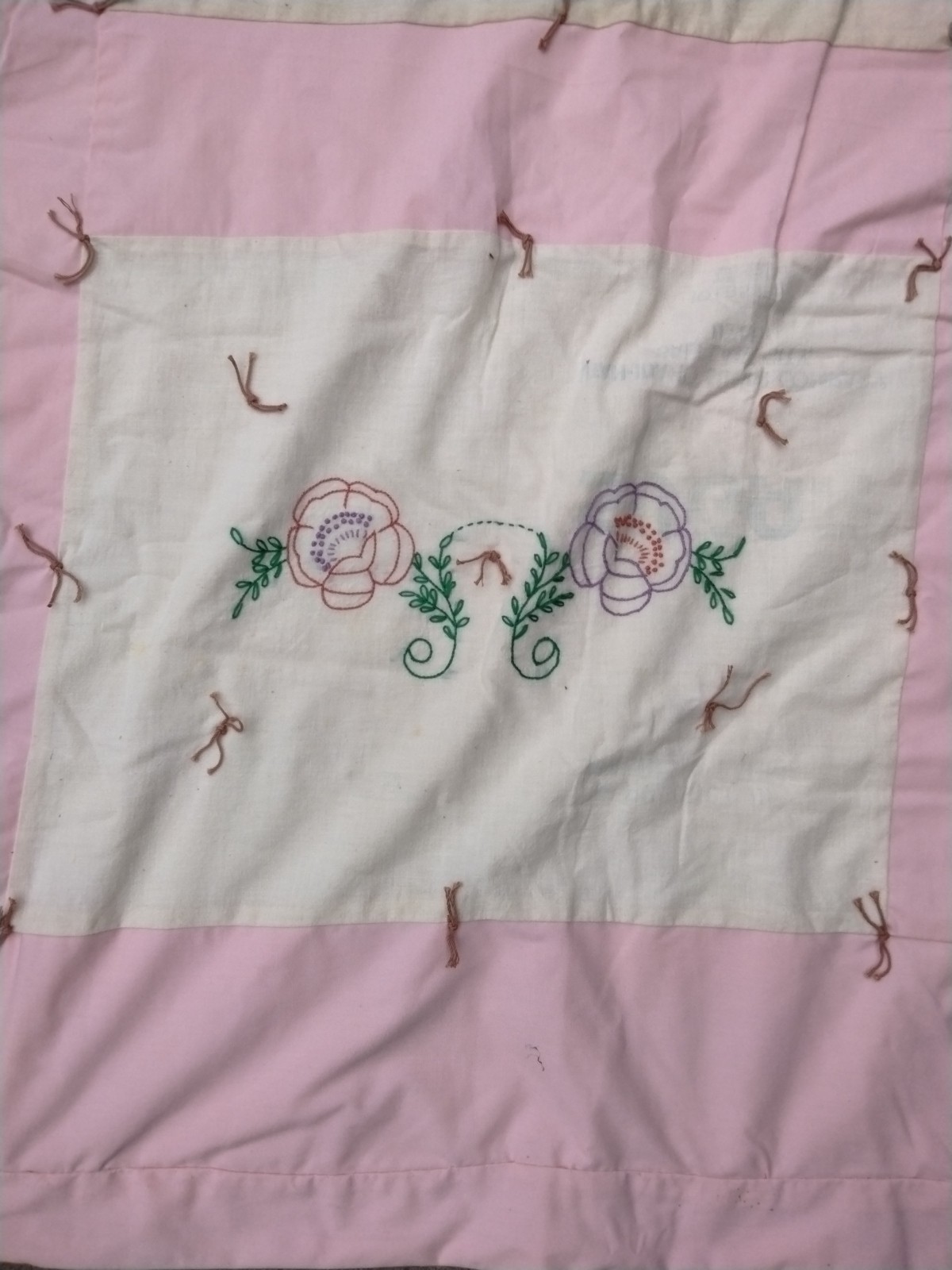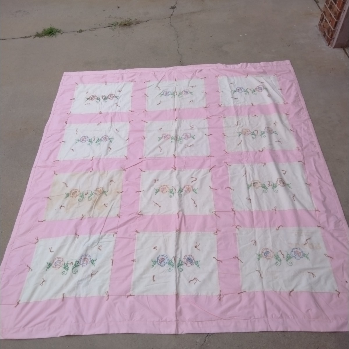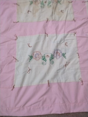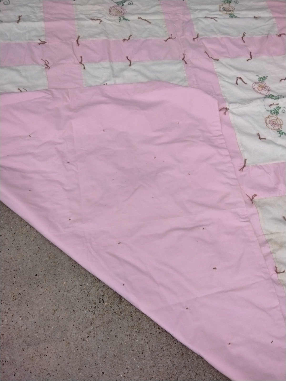 Handmade and Hand Embroidered with Flowers PinkQuilt Throw 76" X 84"