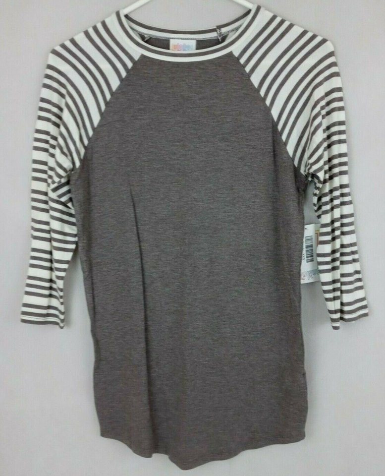 NWT LulaRoe Randy Shirt Gray With Gray & White Striped Sleeves Size XXS