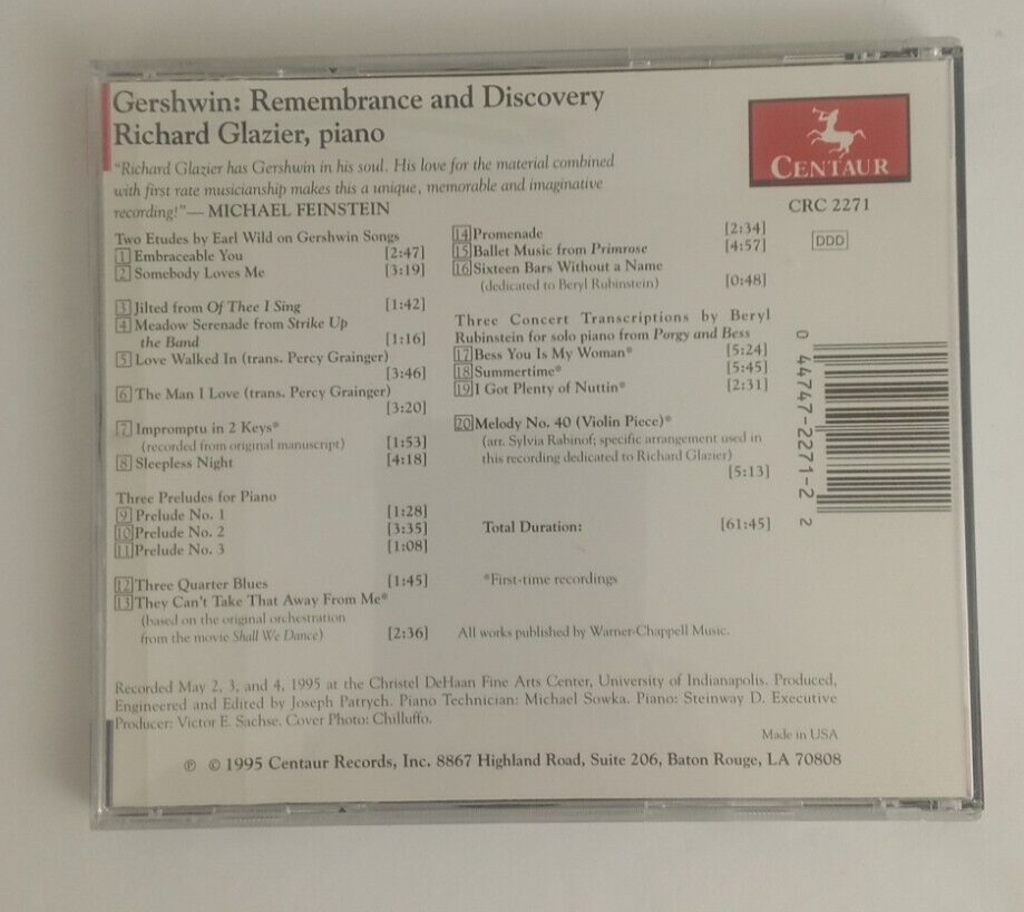 This is for a Gershwin Remembrance And Discovery Richard Glazier CD Centaur Records.